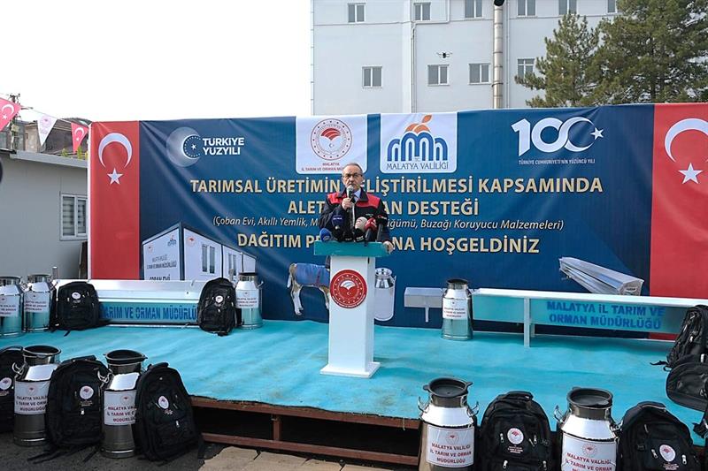 Malatya'da Hayvancılığın Geliştirilmesi Projesi kapsamında “Çoban Evi, Çoban Çantası, Akıllı Yemlik, Metal Sıvat, Süt Güğümü ve Buzağı Koruyucu Malzemeleri Dağıtım Töreni gerçekleştirildi.