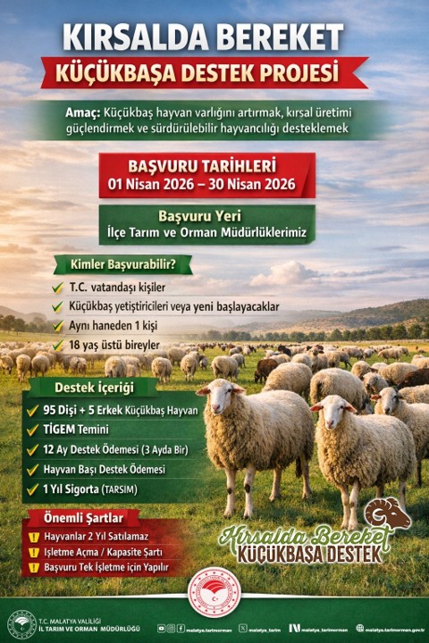 Projenin başvuru şartlarını ve detayları Tarım ve Orman Bakanı İbrahim Yumaklı açıkladı. Bakan Yumaklı, yaptığı açıklamada, küçükbaş hayvan varlığını artırmak, kırsalda üretimi güçlendirmek, hayvancılıkta sürdürülebilirliği desteklemek, gençler ile kadınların üretime daha fazla katılımını sağlamak ve meraya dayalı üretimi daha karlı hale getirmek amacıyla “Kırsalda Bereket Küçükbaşa Destek Projesi"ni hayata geçirdiklerini bildirdi.
